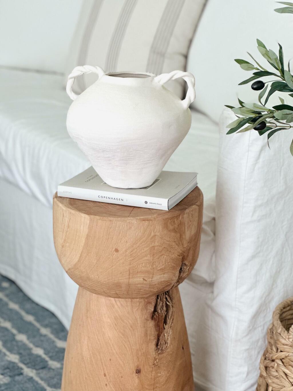 Cerámica artesanal con detalle de agarre torzado, de forma orgánica e irregular que realza su carácter único. Cada pieza refleja un trabajo manual cuidadoso, aportando calidez y un aire natural a los ambientes.
